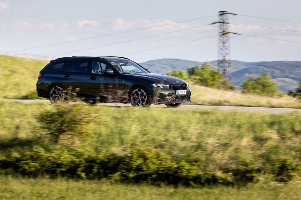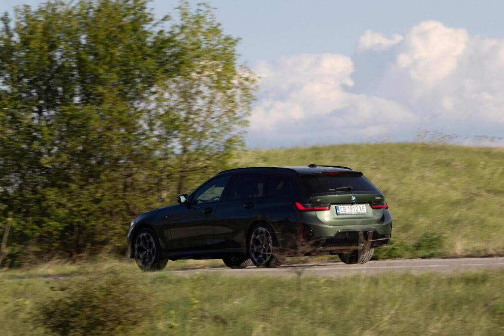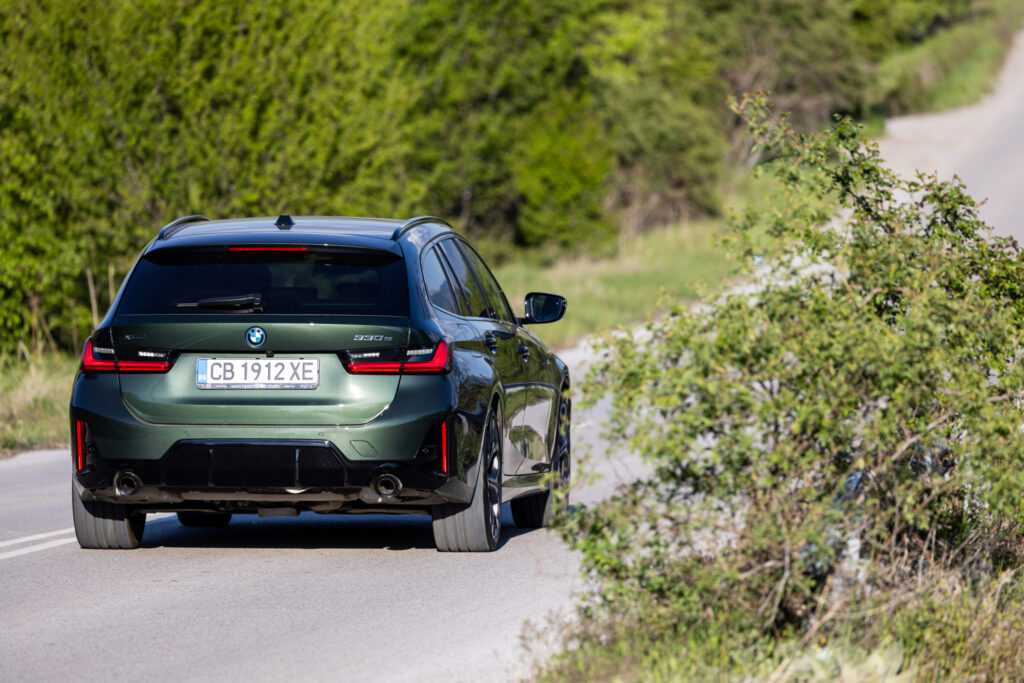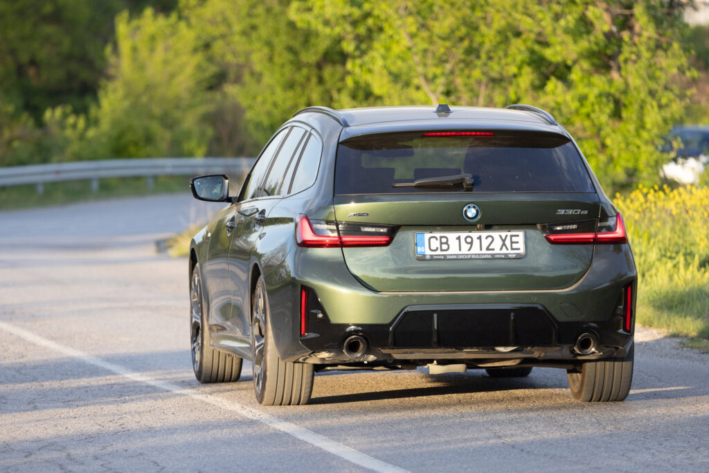 Стандартно моделът се предлага със задно задвижване, като може да се поръча и задвижване на четирите колела, като BMW 330e xDrive Touring, който тествахме. Задвижващата система дава възможност за шофиране изцяло на електричество със скорост до 140 км/ч . Новата високоволтова батерия работи в пълно разбирателство с бензиновия двигател, и много добре си „подават топката“ в зависимост от избрания режим и стил на шофиране. В режим Hybrid EcoPro автомобила изключва двигателя при първа възможност, като по този начин увеличава ефективността без никакви усилия от страна на водача. В режим Sport мотора и скоростната кутия реагират светкавично, като дават и 10-секунден „бонус“, като „впрягат“ допълнителни 40 к.с., необходими за реактивно изпреварване например.