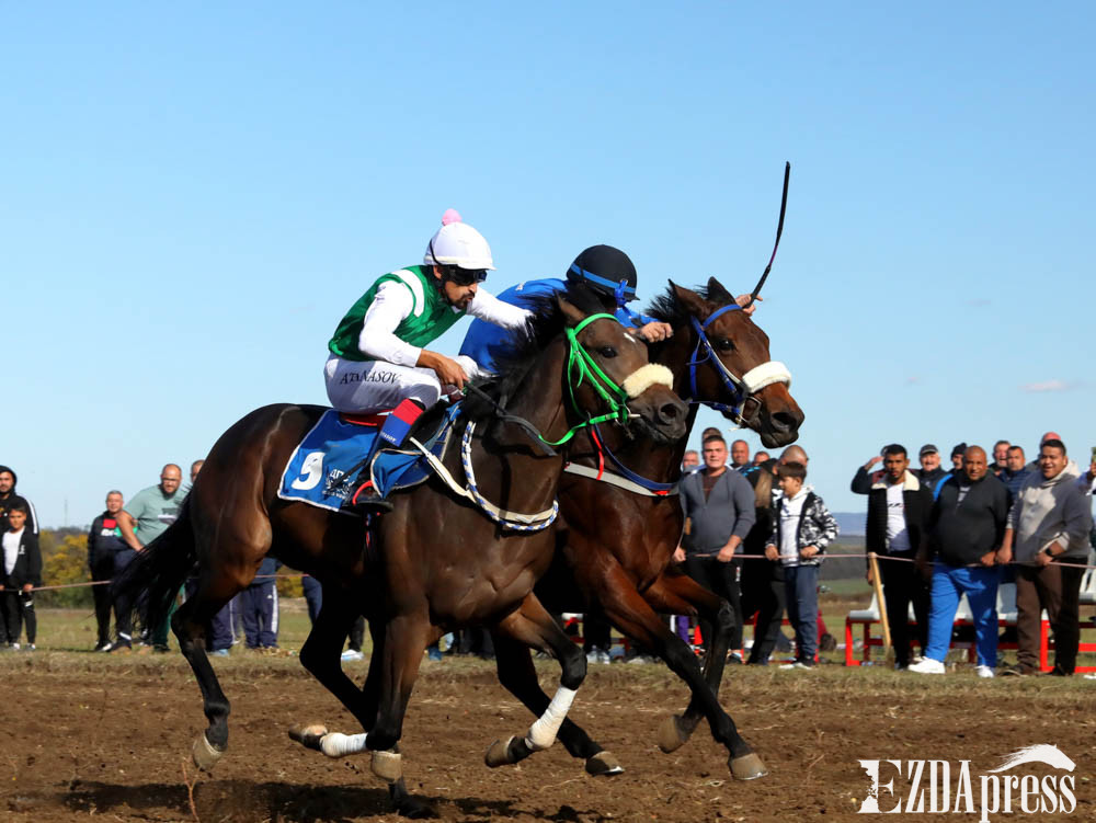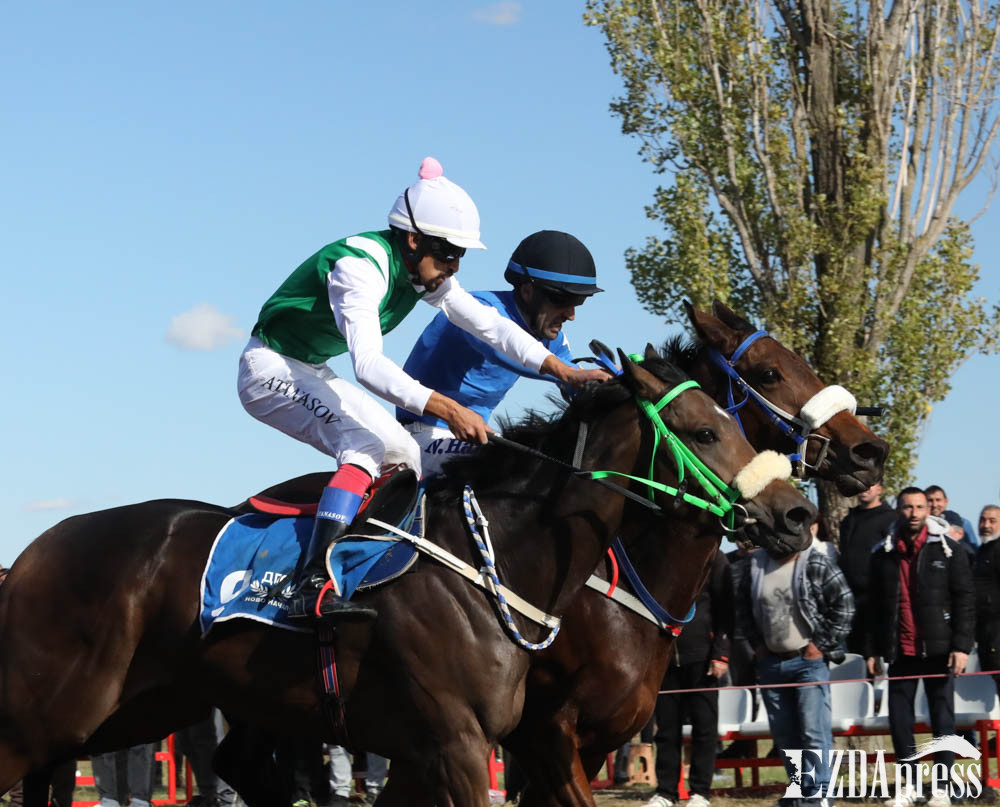 По дългата 1950 – метрa писта, която е най-широката у нас (14 м.) първи стартираха дванадесет 3-годишни и по-възрастни бегови коне от ЧАП на дистанция 1200 метра наградата „Голям спринтьорски приз“. На последната права три коня атакуваха първото място, но най-бърз в последните метри бе жребец Айлън Мък с жокей Дюняби Енвер. 5-годишния жребец е собственост на Енвер Енверов, а тренинга е поверен на Мюджат Изет. Втори, трети и четвърти станаха съответно: кобила Голден Дреймс (Стоян Ганчев – жокей, Мустафа Мехмед -треньор и Бейти Мехмед – стопанин), кастрат Лето Дъ Фърст (Валентин Атанасов, Наджи Садък и Назиф Шекер), кобила Туша (Йордан Чолаков, Венко Атанасов и клуб „Сандрово“)