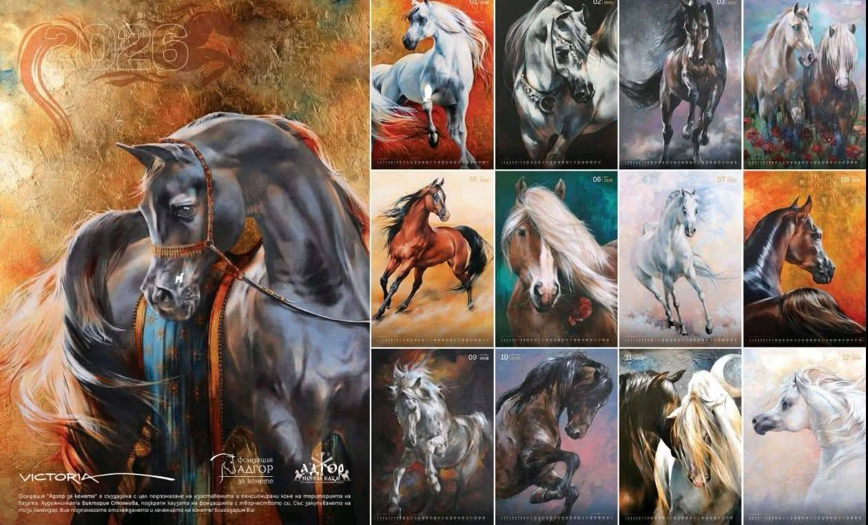 Любители на конете, наближава 2026 – годината на Огнения кон ! Конна база „Адгор“ и фондация „Адгор за конете“ издадоха прелестен календар с рисувани коне. Автор на картините е художничката Виктория Стоянова. 12-листен + корица, луксозен печат, календарът е чудесен коледен подарък, още повече, че е сътворен с идеята всички средствата от продажбата му да бъдат дарени благотворително за нуждите на конете, които се отглеждат в базата. Това са изоставени и приютени коне, възрастни, които вече не се яздят и имат нужда от специално обгрижване за спокоен живот: добавки, ваксини, минерали и ветеринарно обслужване.