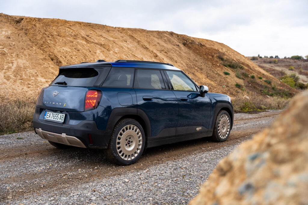 Опциите за оформлението на екстериора на новото MINI Aceman включват и джанти с диаметър от 17 до 19 инча, които зависят отново от избраното ниво на оборудване. В тестовият модел те имат препратка към рали състезанията. За това и терена на снимките е подбран, за да подчертае рали емоцията на която модела е способен.