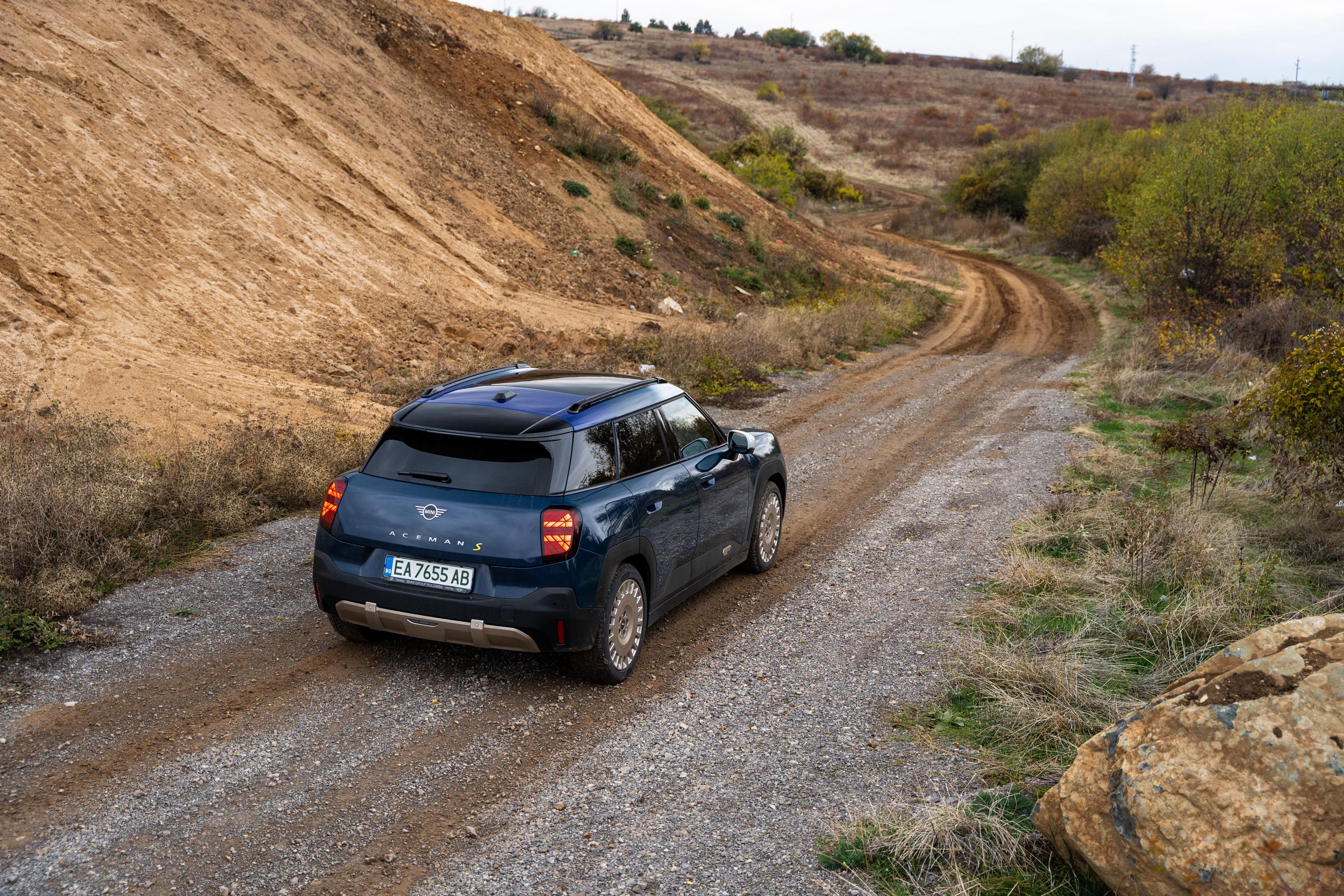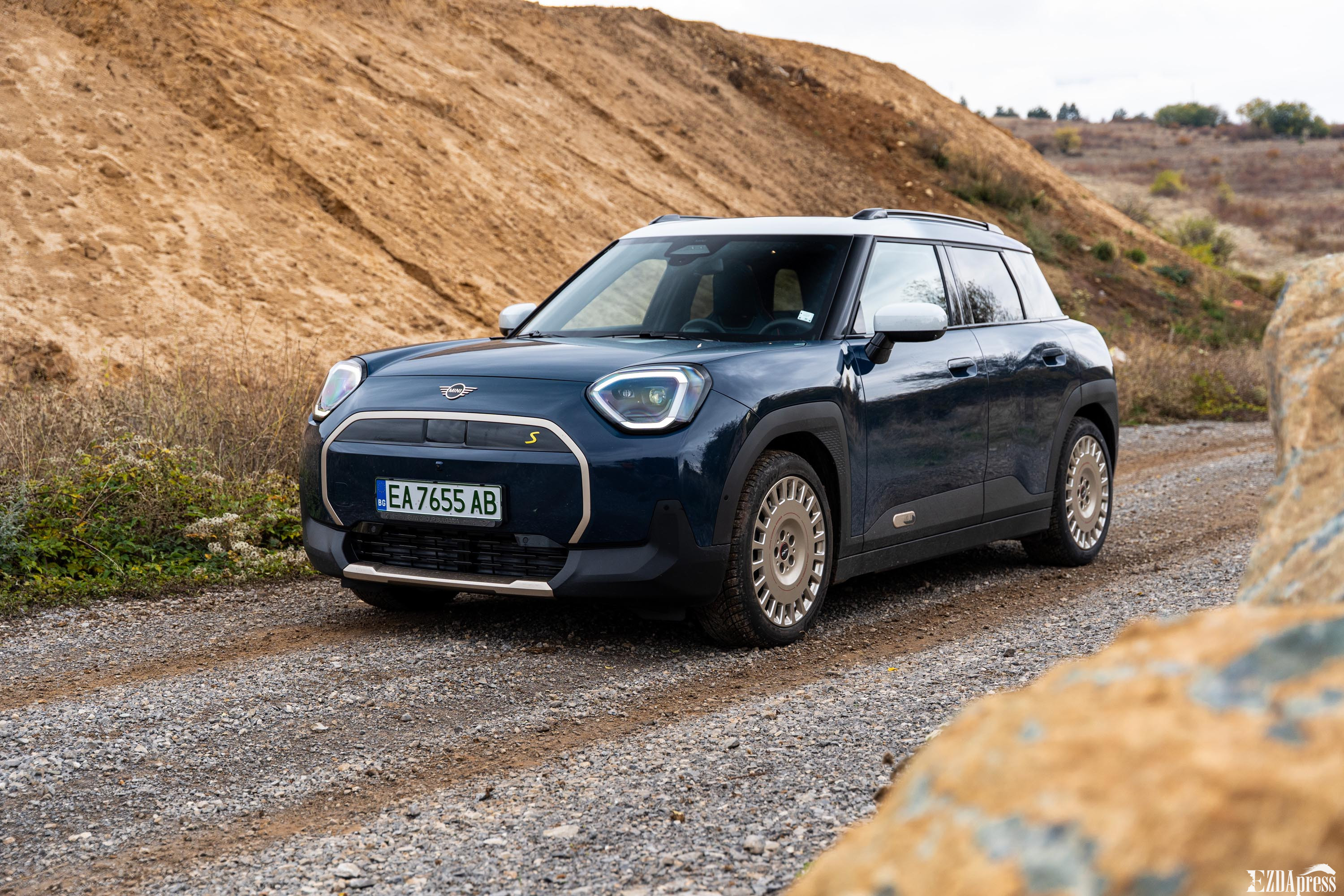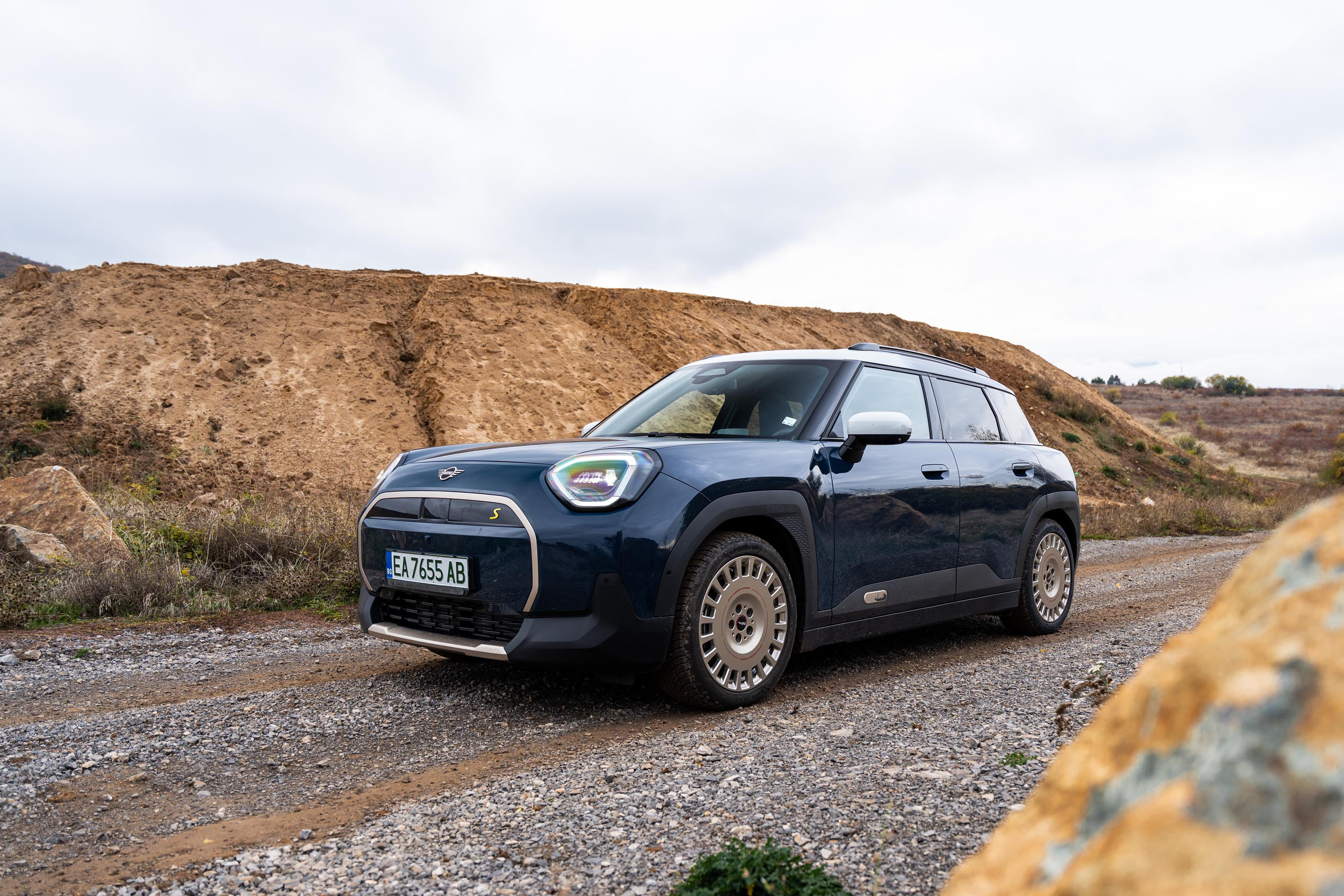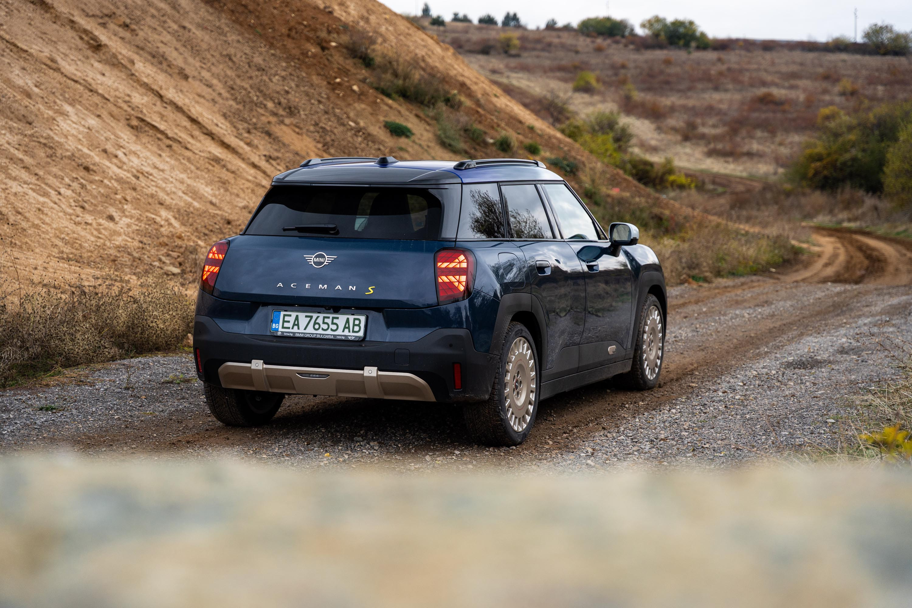 Опциите за оформлението на екстериора на новото MINI Aceman включват и джанти с диаметър от 17 до 19 инча, които зависят отново от избраното ниво на оборудване. В тестовият модел те имат препратка към рали състезанията. За това и терена на снимките е подбран, за да подчертае рали емоцията на която модела е способен.