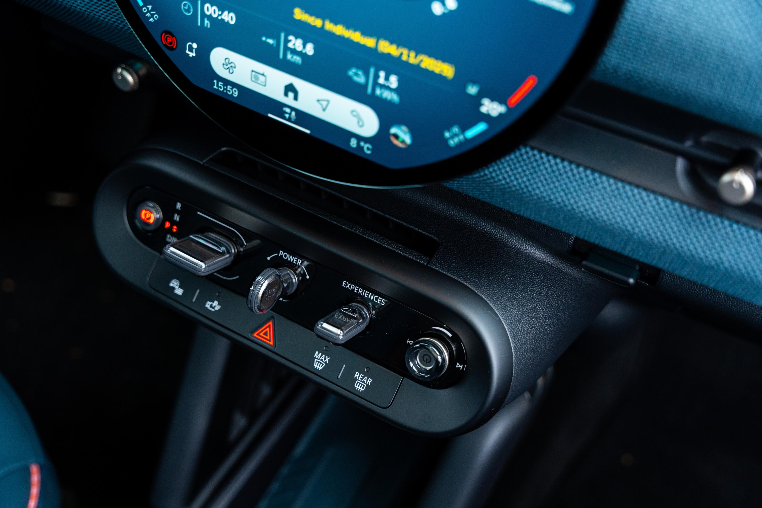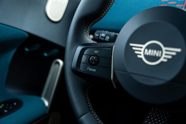 Само дългия път може да разгърне удоволствието от осемте избираеми режима MINI Experience с различни настройки на окачването: Go-kart, Vivid, Core, Green, Timeless, Balance, както и Trail. Режимът Go-Kart стартира с вихрен звук и покана за по-спортно шофиране. Дисплеят става червен, а кормилното управление по-директно, спирачната система реагира мигновено. Усещането за картинг е невероятно. Под кръглия дисплей са разположени аналогови превключватели с бутони за позиция на паркиране, селекторът на автоматичната скоростна кутия, въртящият се бутон за стартиране на електромотора, бутонът за избор на режимите на движение и бутон за пускане и спиране на аудиосистемата.