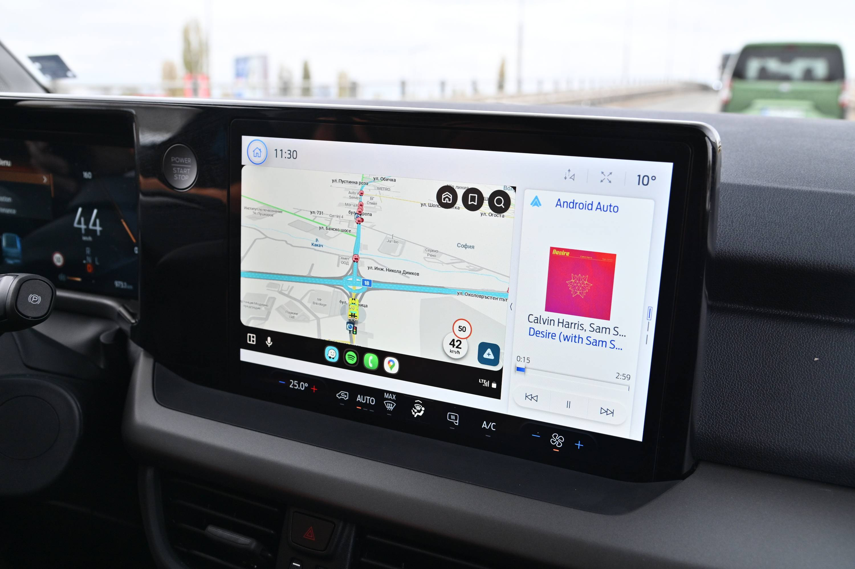 И при двата модела инструменталният панел съдържа 12-инчов дигитален екран пред водача и 12-инчов централен сензорен екран с най-новата система на Ford – SYNC 4, съвместима безжично с приложенията Android Auto и Apple CarPlay като стандартно оборудване. Иновативен, уникален за класа пакет Office включва сгъваема, плоска работна повърхност и осветление, за да направи използването на лаптоп, попълването на документи или почивката в кабината по-лесно и по-удобно.
