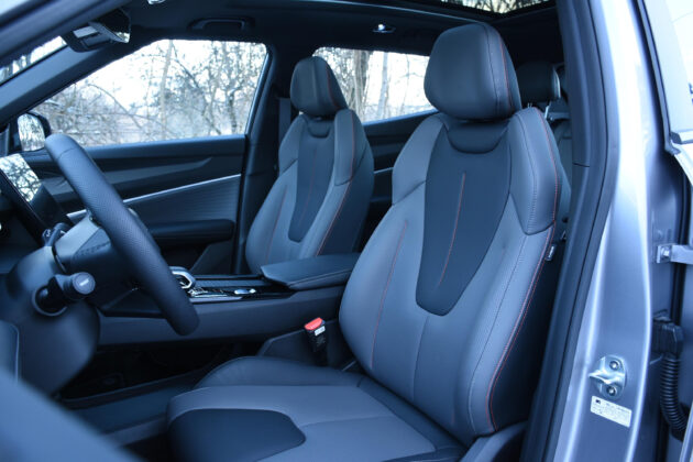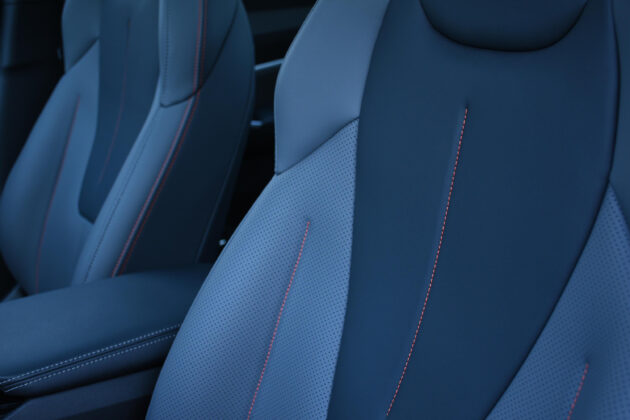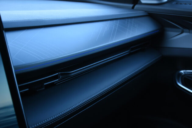 Голям плюс за модела е много високото ниво на изработка на материалите за облицовка. Няма твърда и евтина пластмаса. Дори в базовата версия на оборудване седалките са тапицирани с изкуствена кожа с прецизни шевове, а кокпитът и горните повърхности на вратите са покрити с меки на допир материали. Много деликатно са съчетани различни ниши и поставки за съхранение на дребни предмети. Панорамен стъклен покрив, многоцветното амбиентно осветление с избор до 72 нюанса, разкошно удобни предни седалки с електрическо регулиране, които са с функция отопление, както и волана, с отопление са и задните седалки, които без издърпан подлакътник настаняват спокойно трима възрастни.