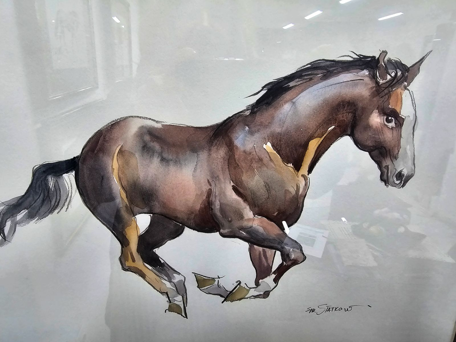 Галерията на улица „Раковски“ се оказа тясна за всички желаещи да присъстват на премиерата и да разгледат изложбата от 16 акварела с коне в различни цветове, ходове и алюри. Коне в галоп, в тръс, на ходом, сътворени от фината ръка на майстора, която анатомично точно е изобразила всеки един детайл от изящната структура на коня. „Аз самият яздя, но за да рисувам коне ми трябваше време да ги анализирам, да ги наблюдавам, да се запозная с тяхната анатомия, с техния дух олицетворяващ свободата. Дълго време бях в атмосферата на конна база в прегръдките на Витоша.“, споделя Статков.