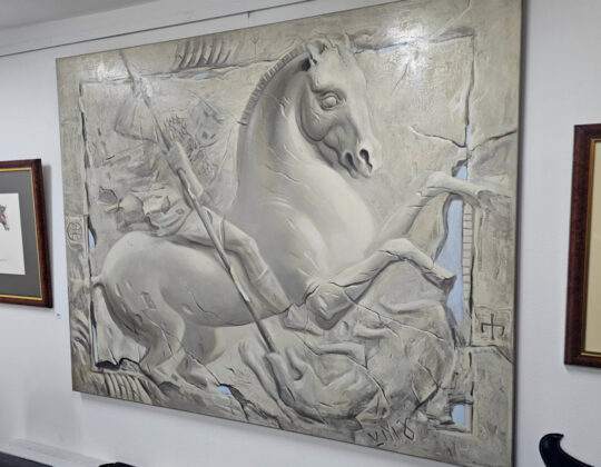 Неслучайно в годината на Огнения кон по китайския лунен календар, неслучайно в началото на новата година идва и самата изложба, сътворена на пана преди близо десет години. Сега обаче авторът решава да „развихри“ конете от своето творчество. Сред картините в експозицията се отличава и голямата картина „Конник“ (масло) от едноименният цикъл на Маестрото: „Каменната книга на България“, разположена в центъра на галерията.