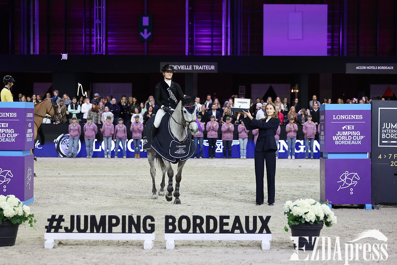 По също време, на друг манеж, Бордо посрещна и кръг от Световната купа по прескачане на препятствия Longines FEI Jumping World Cup 2025/2026. Ирландката Джесика Бърк постигна най-доброто представяне в кариерата си, за да спечели приказна победа със своя сив кастриран жребец Good Star du Bary. По този начин Бърк затвърди мястото си в историята като първата жена атлетка, спечелила титлата в Бордо. „Това е първата ми Световна купа и първата ми победа с пет звезди. Конят ми е само 10-годишен, но вече има Световен трофей.“, сподели Бърк. Много емоционален финал за една бивша учителка, която е на професионално ниво едва от шест години, не само постигайки първата голяма победа в кариерата си, но и записвайки името си в рекордите, като първата жена атлетка, стъпила на подиума в Бордо. С тази победа Бърк се изкачва до седмо място в класирането на лигата с 46 точки и с поглед насочен към финала на Световната купа по прескачане на препятствия Longines FEI във Форт Уърт (САЩ).