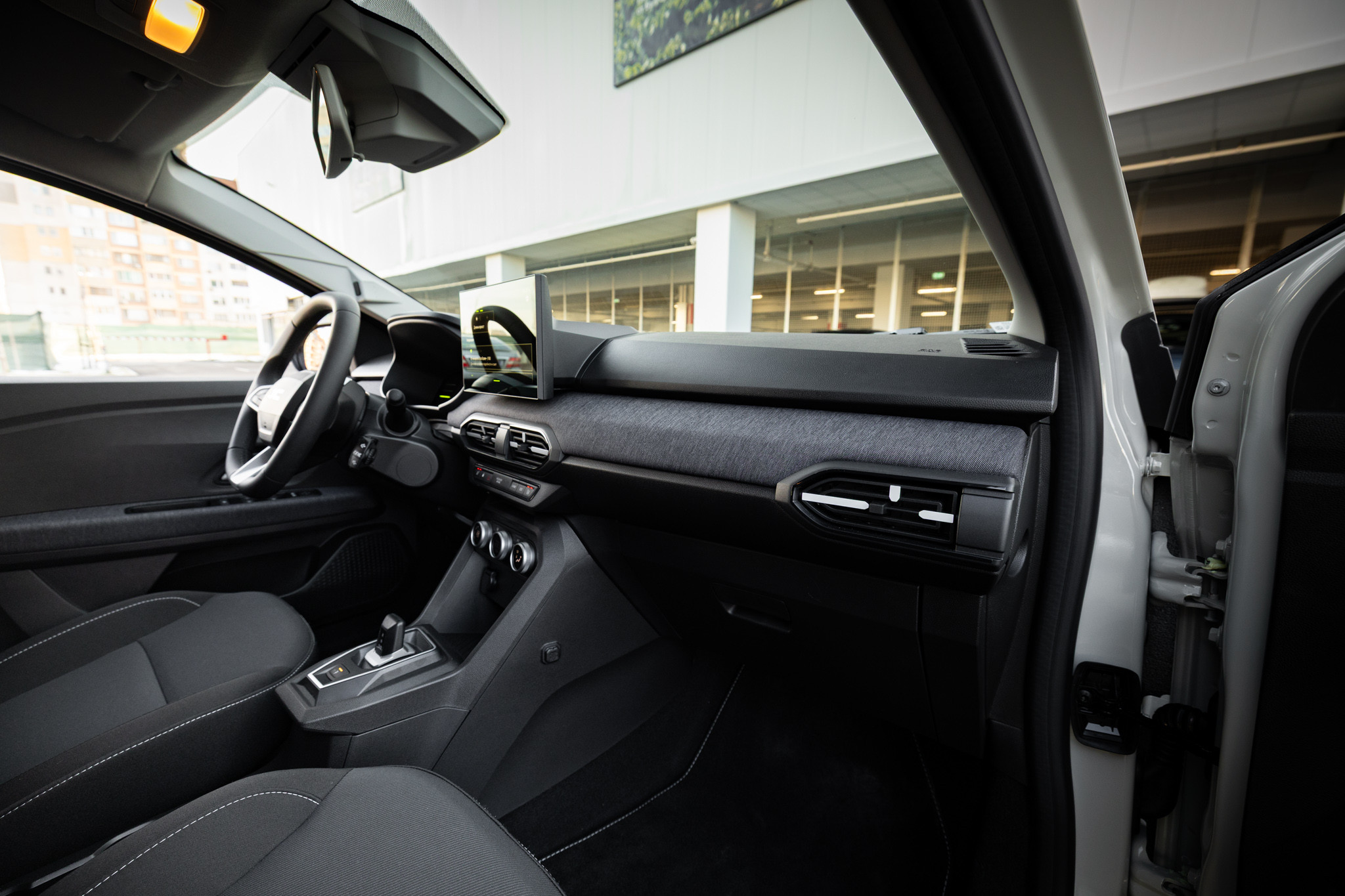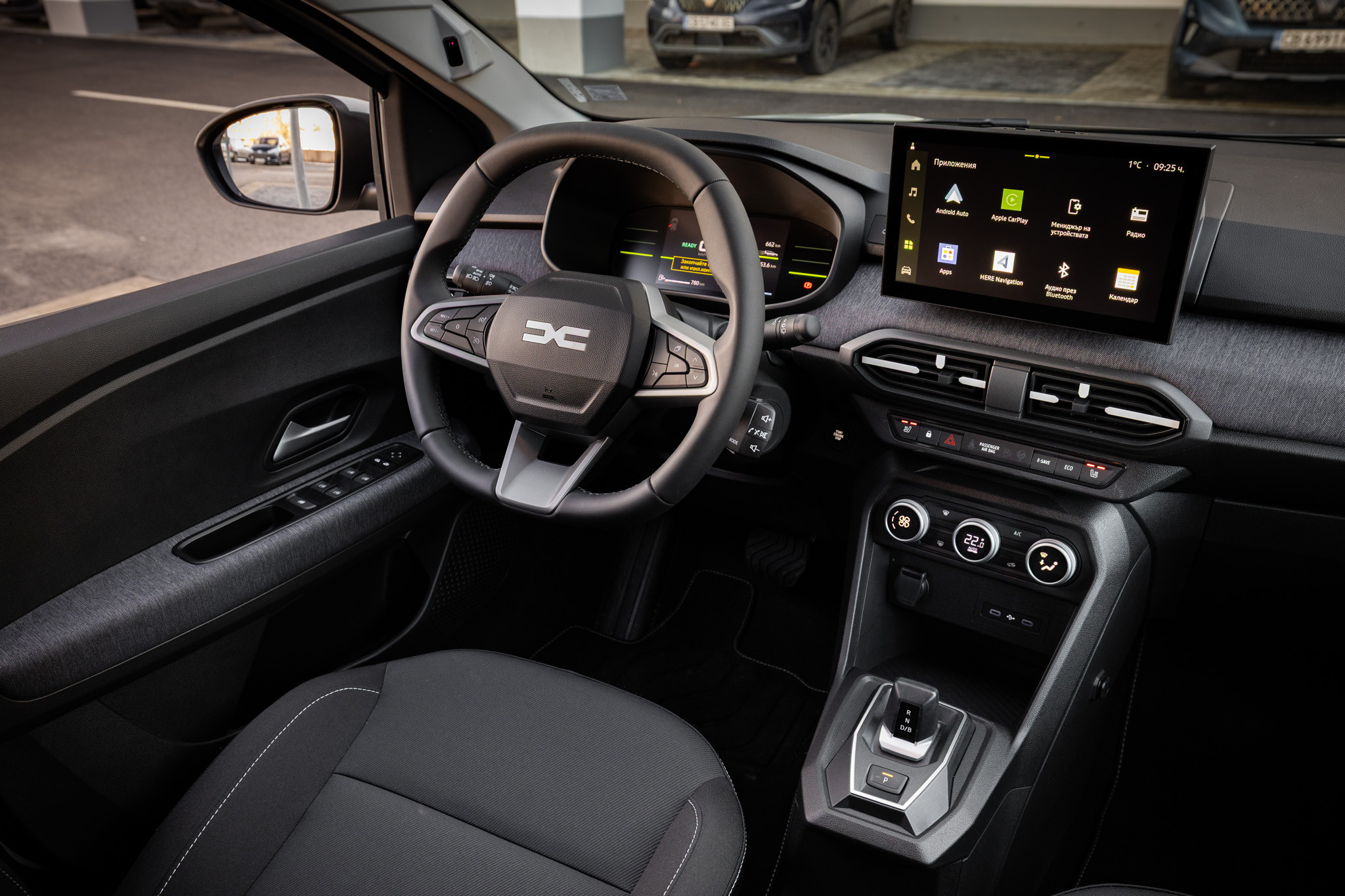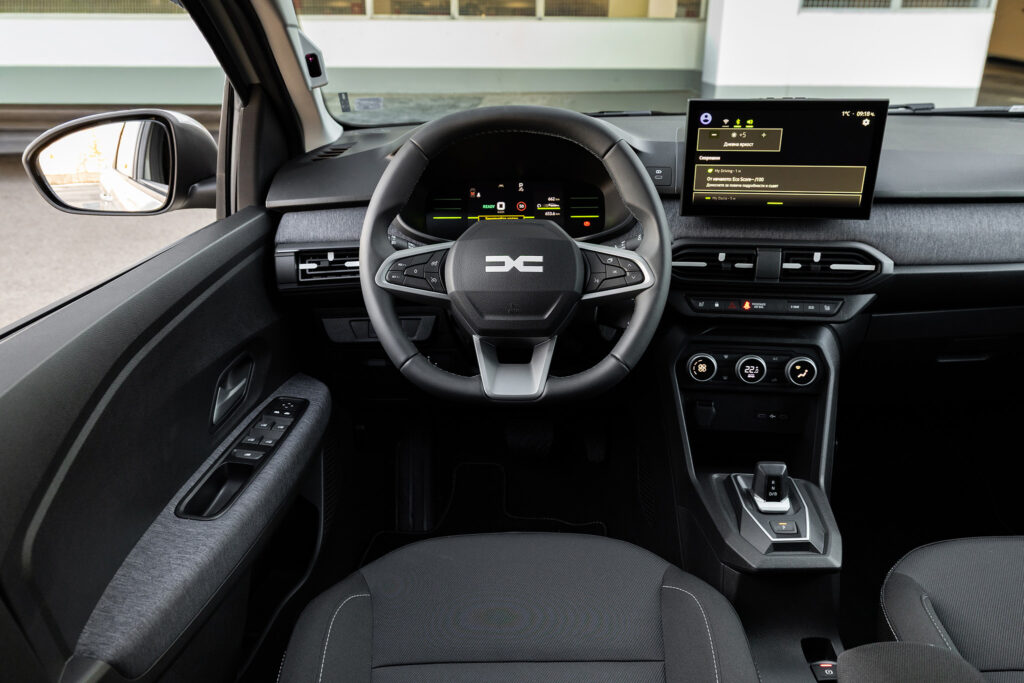 Отвътре Dacia Jogger посреща с нова тапицерия по вратите от текстил, с по-устойчиви тъкани на седалките и таблото. В най-високото ниво на оборудване се предлага практичната микрофибърна миеща се тапицерия.