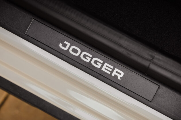 Обновеният стайлинг на Jogger абсолютно се вписва в природна обстановка с архитектурното наследство и разкош. Солиден външен вид с дълга каросерия, SUV дизайнерски елементи, нови протектори на арките на колелата, нов LED светлинен подпис свързан с новата решетка, нова предна броня и за първи път Jogger с нов бежов цвят на каросерията (на снимките). В зависимост от версията функционалният модел получава нови тасове или олекотени алуминиеви джанти и антена тип перка на акула като стандартно оборудване от версия Expression.