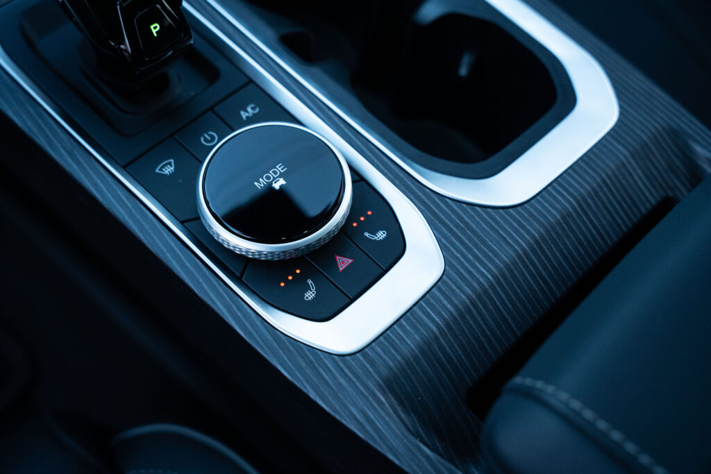 Смяната на режимите на шофиране се извършва чрез въртящ селектор на централната конзола, а подлакътника е голяма ниша с функция за изстудяване на напитки.