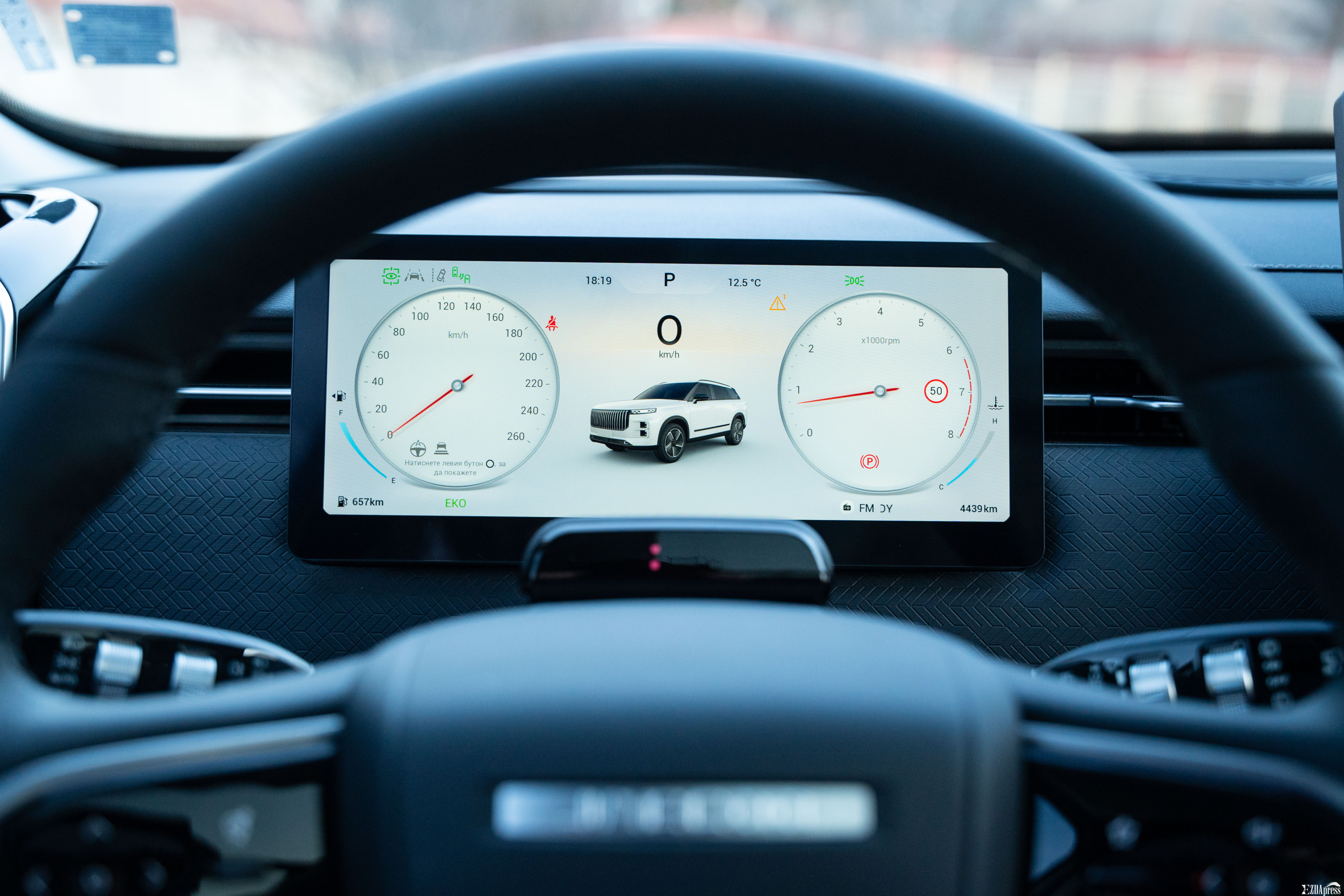 Тествахме версията с 1,6-литров 4-цилиндров бензинов турбодвигател, със 7-степенна автоматична скоростна кутия с двоен съединител и задвижване 4х4. Моделът е офроуд ориентиран със 7 режима на шофиране, което рядко се среща при китайските SUV-ве. С много богато оборудване Jaecoo 7 у нас се предлага в две нива – Premium и Exclusive.