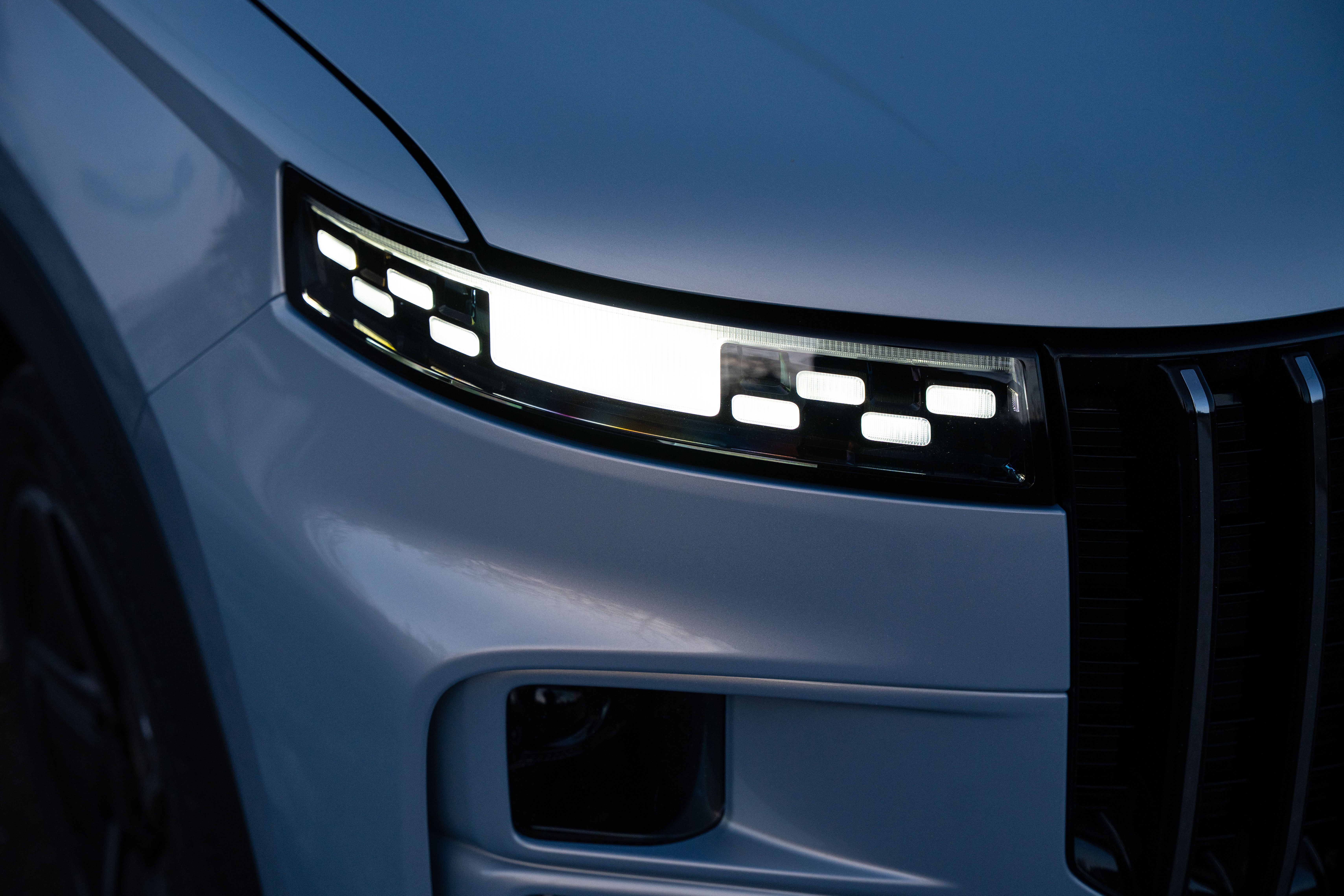 Визията е подсилена от голяма предна радиаторна решетка с лого на JAECOO (добър знак за разпознаваемост, защото и в момента се разминаваме с доста нови модели, които трудно се разбират каква марка са). Класически изцяло LED фарове, големи арки на колелата, с 19-инчови колела с алуминиеви джанти, с 200 мм пътен просвет, лайсна в задната част с интегрирани светлини и отново фирменото лого. Дръжките на вратите са прибиращи се – акцент типичен за премиум автомобилите.
