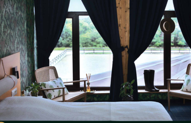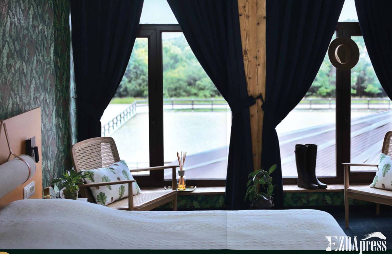 Уютни стаи, малък басейн, термо и релакс зона, библиотека. Място с дозиран лукс и в типичен ловен стил. Сградите за настаняване са две. Ловна хижа с 13 стаи, която е била първоначалната резиденция на този имот и хан с 19 стаи, който има топла връзка директно към конюшните, така че гостите да имат Арабски коне за свои съседи. Повечето стаи са с изглед към падоците. Релаксираща гледка за всеки истински коняр.