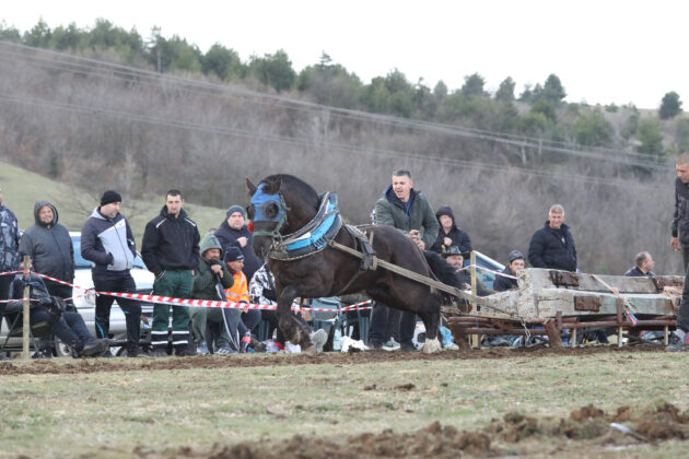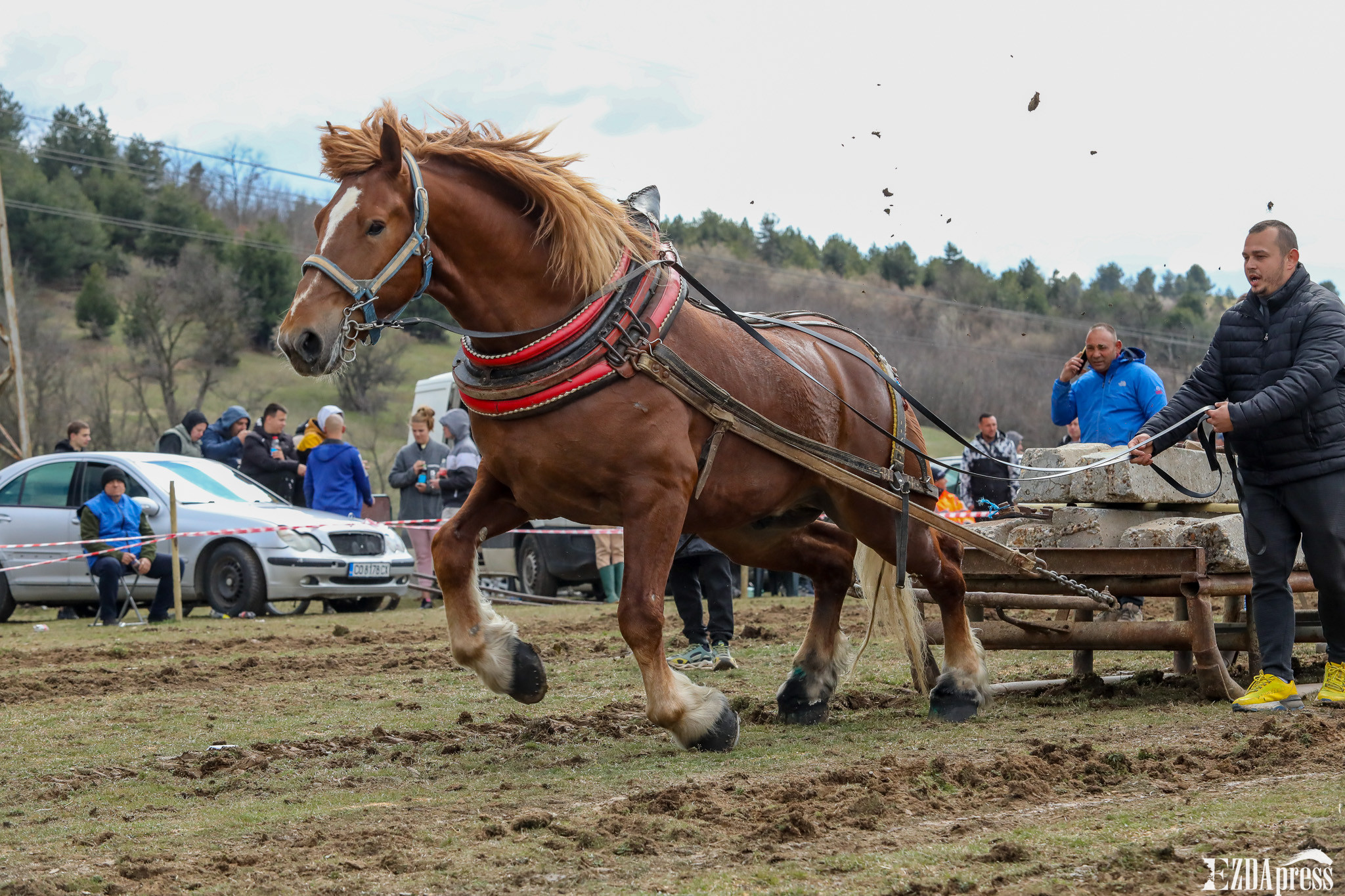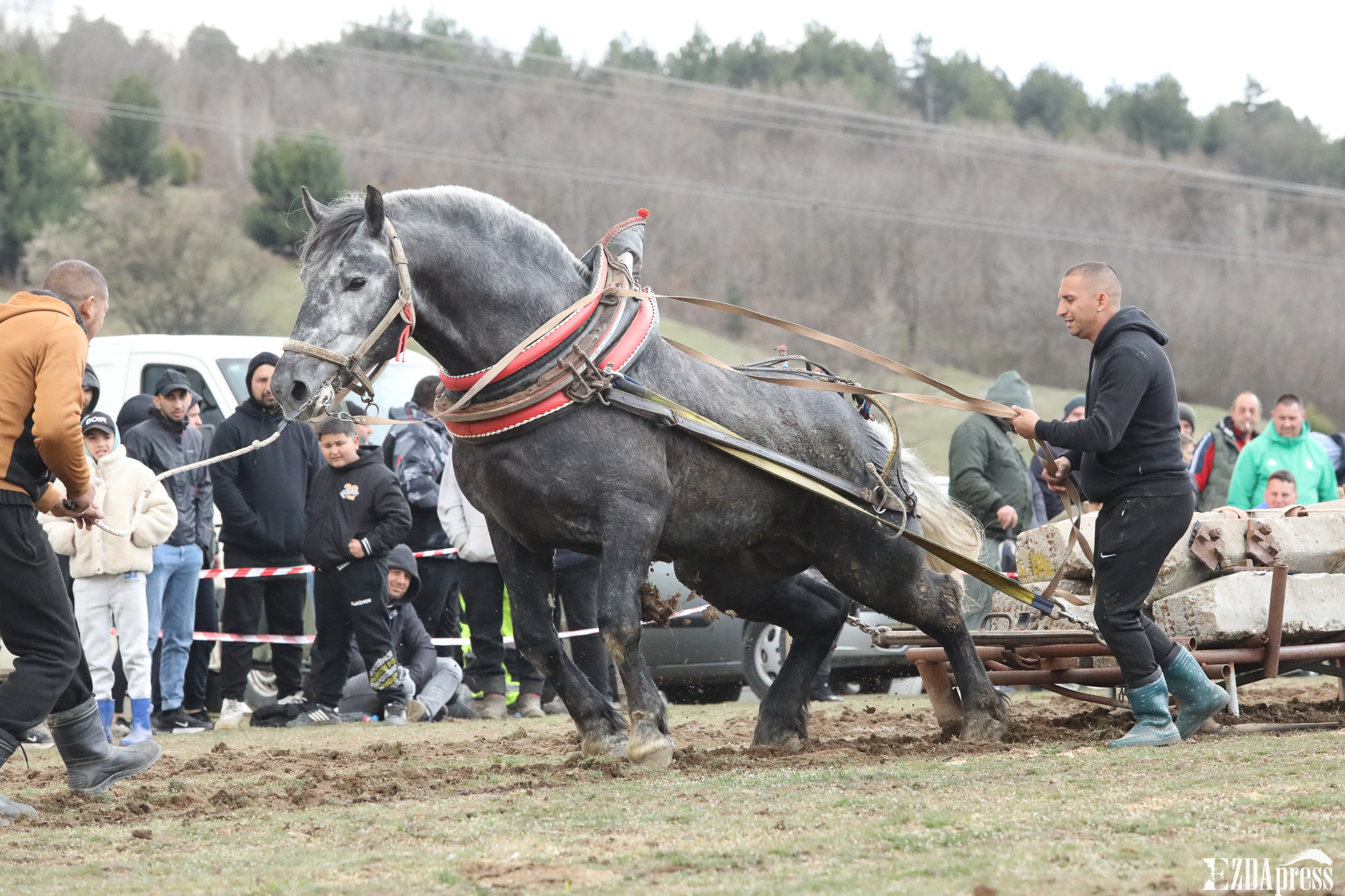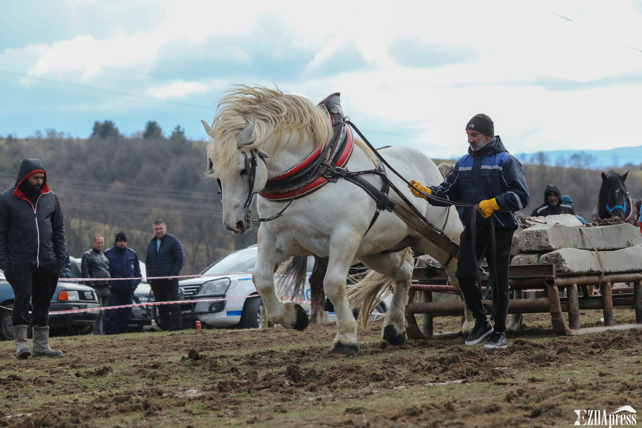 В групата на конете тежащи до 800 кг, на старт застанаха 6 тежковози с първи товар от 1600 кг. На финала товарната шейна вече бе с 11 траверса с общ товар от 3 136 кг. С изтеглени 26,44 м победител стана кон Урбан на Дарин Василев. С 23,76 м се разписа тандема от кон Зоро и водач Денис Босов и трети с 21,40 м стана кон Хари на Никола Томов.