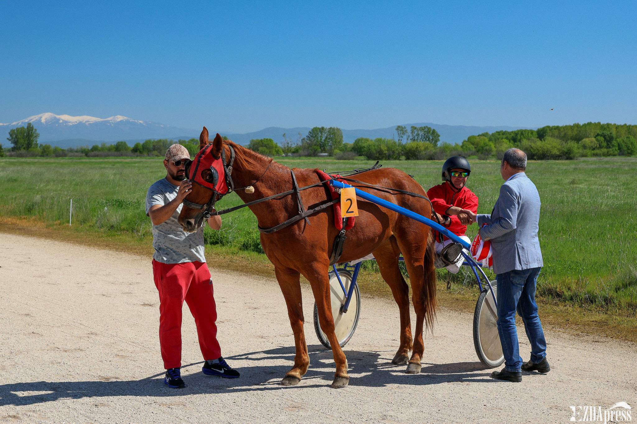 Второто изпитаниe на същата дистанция от 1 750 метра посрещна 6 четири годишни коне, като за отбелязване е, че в тази гара се изправиха едни срещу други четири кончета от един баща – Мagrite Dra (баща и на кобилата победител в първа гара). Това е един от най-титулованите жрбеци у нас. Универсален кон, с благ характер, податлив на обучение, все качества, които се вижда, че е предал на поколенето си. В гара от шест коня 4 са негови потомци, всички по стартов списък с буква „М“: жребец Margerat, кобила Marica Dra, кобила Миstika A.S. и кобила Мatritza A.S. И в доказателство за талантливите гени на жребец Margritte Dra, първото място отмъкна кобила Mistika със собственик, треньор и запрежчик Ангел Стоилов, като с тази победа заприжчика печели вси§ките два старта до тук.