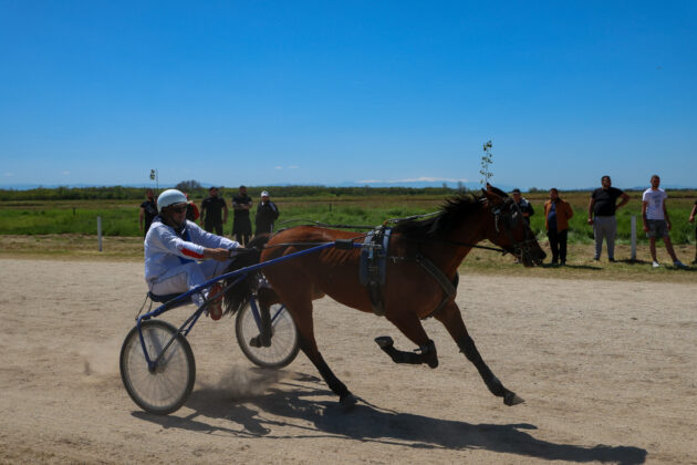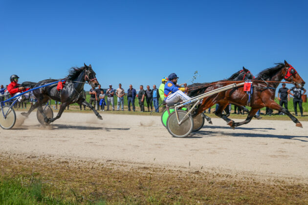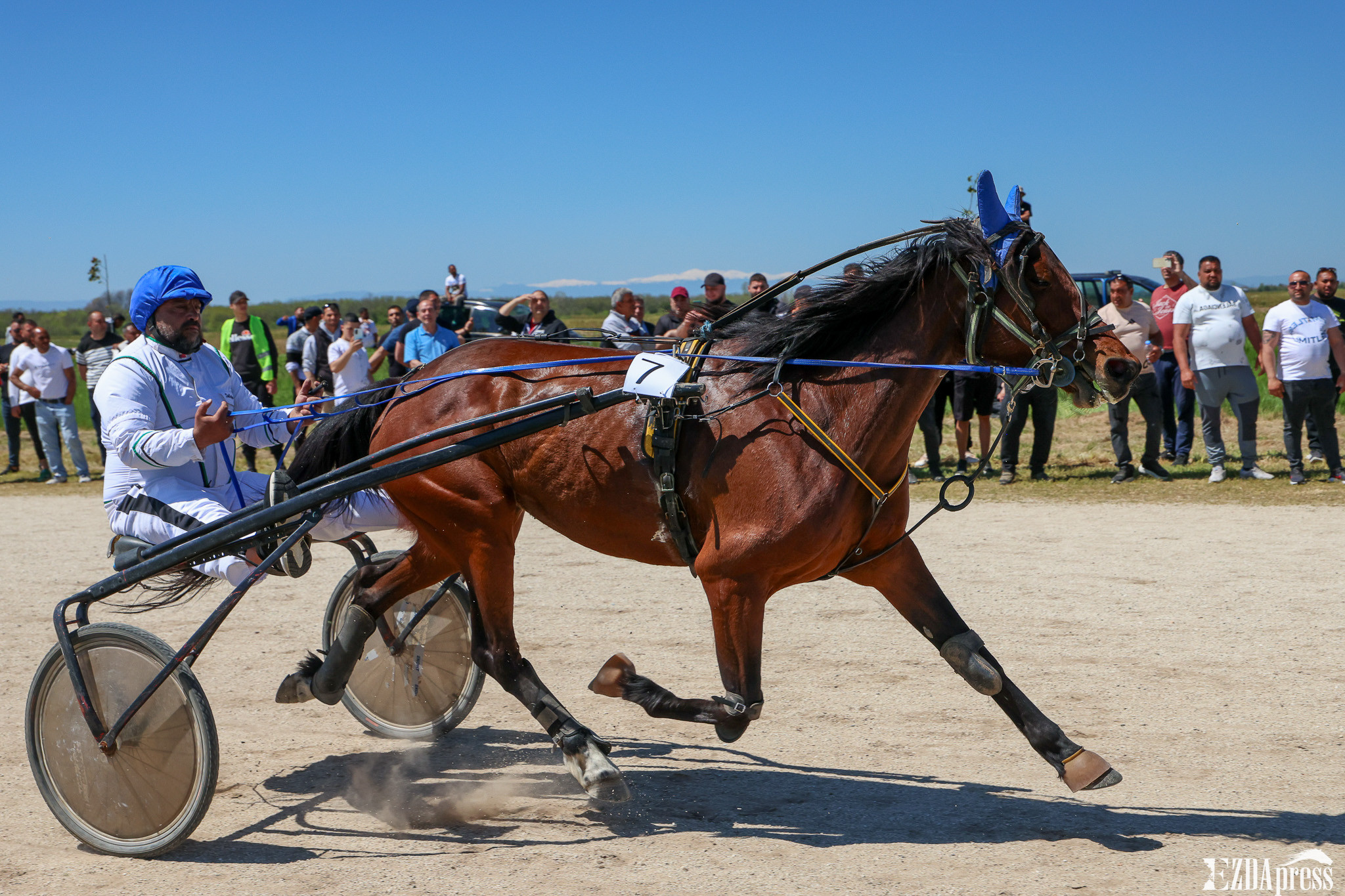 Седма гара на 1900 метра за коне от порода Френски Рисак отприщи 6 кобили – група Б на слънчевото трасе в Царимир. Втората „порция“ кобили от порода Френски Рисак предложи старт 30 минути след първата серия от същата порода, като температурите на пистата вече отчитаха 29,05 градуса, но благодарение на ветреца, който се извиваше, атмосферата бе добра и с попътен вятър за конете на терен. В началото на гонката поведе зпрежчик Димитър Заешки, но първо място спечели собственика, треньор и запрежчик Севдим Мустафов, като за отбелязване е, че в гарата отпадна една кобила поради вдигнат галоп.